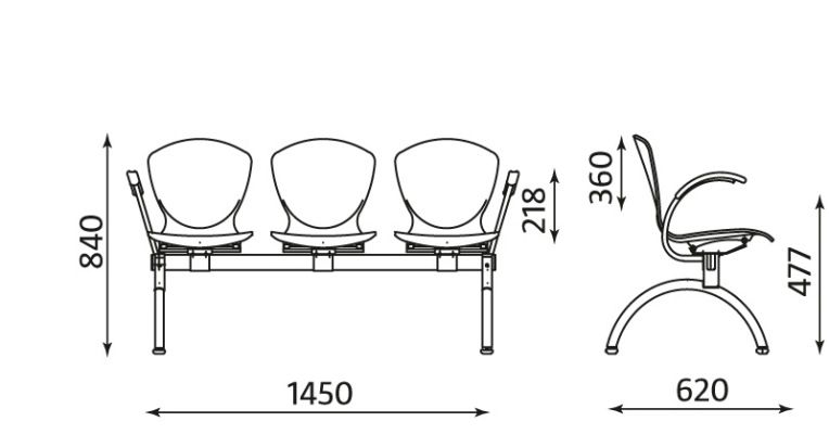 Baza banchetei este din structura metalica aluminata. Bratele fixe ale banchetei sunt din structura metalica aluminata cu paduri din lemn.