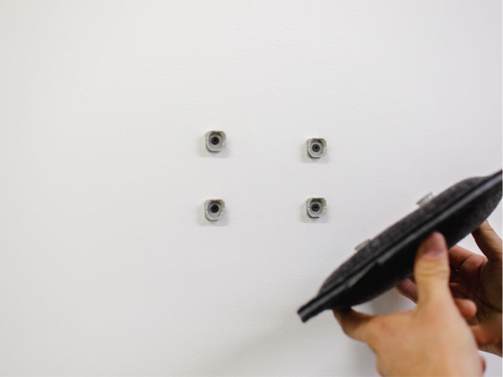 LEAVES WALL/GLASS - se montează pe panourile de sticlă cu ventuze de plastic, iar pe perete printr-un sistem de prindere simplu cu patru accesorii. Aceste sisteme de fixare sunt simple și pot fi utilizate de către oricine pentru a realiza o altă amenajare a biroului.