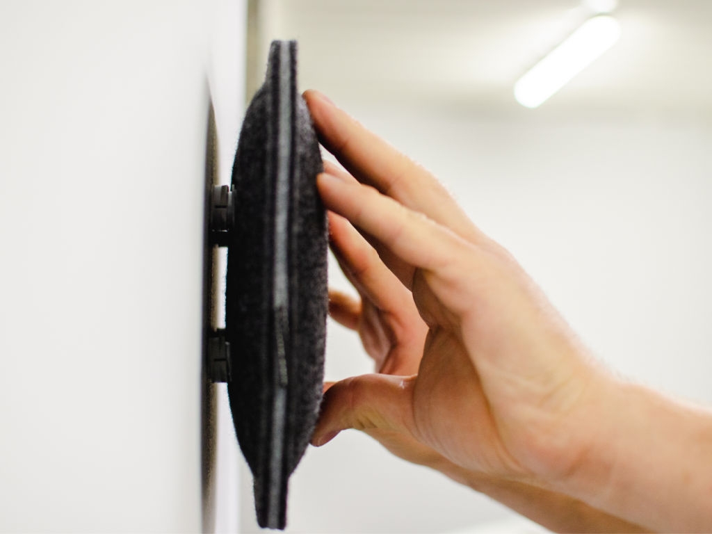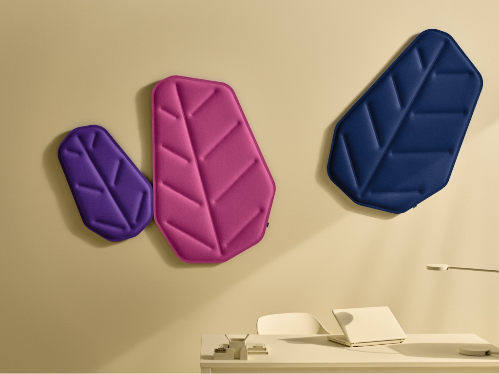 LEAVES WALL/GLASS sunt panouri acustice care se pot monta în birourile existente pe perete sau pe panourile de sticlă pentru a reduce ecoul încăperilor.