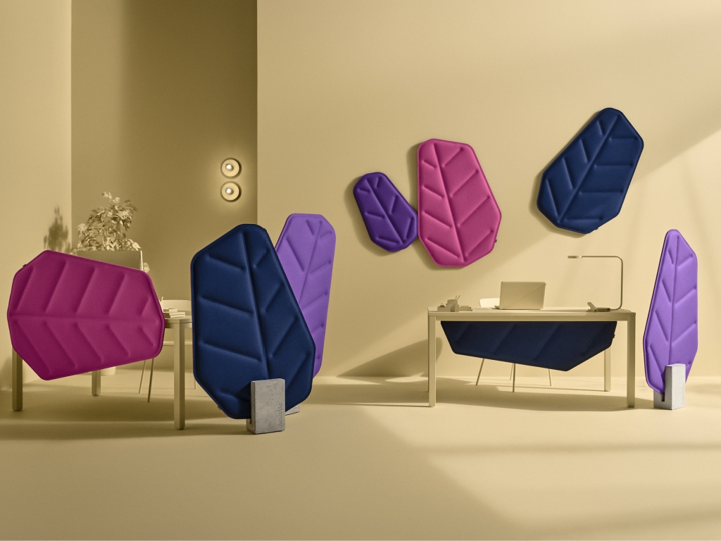 LEAVES – panou despățitor acustic vă permite să alegeți culoarea fiecăruia dintre cele trei straturi ale tapițeriei sale.
