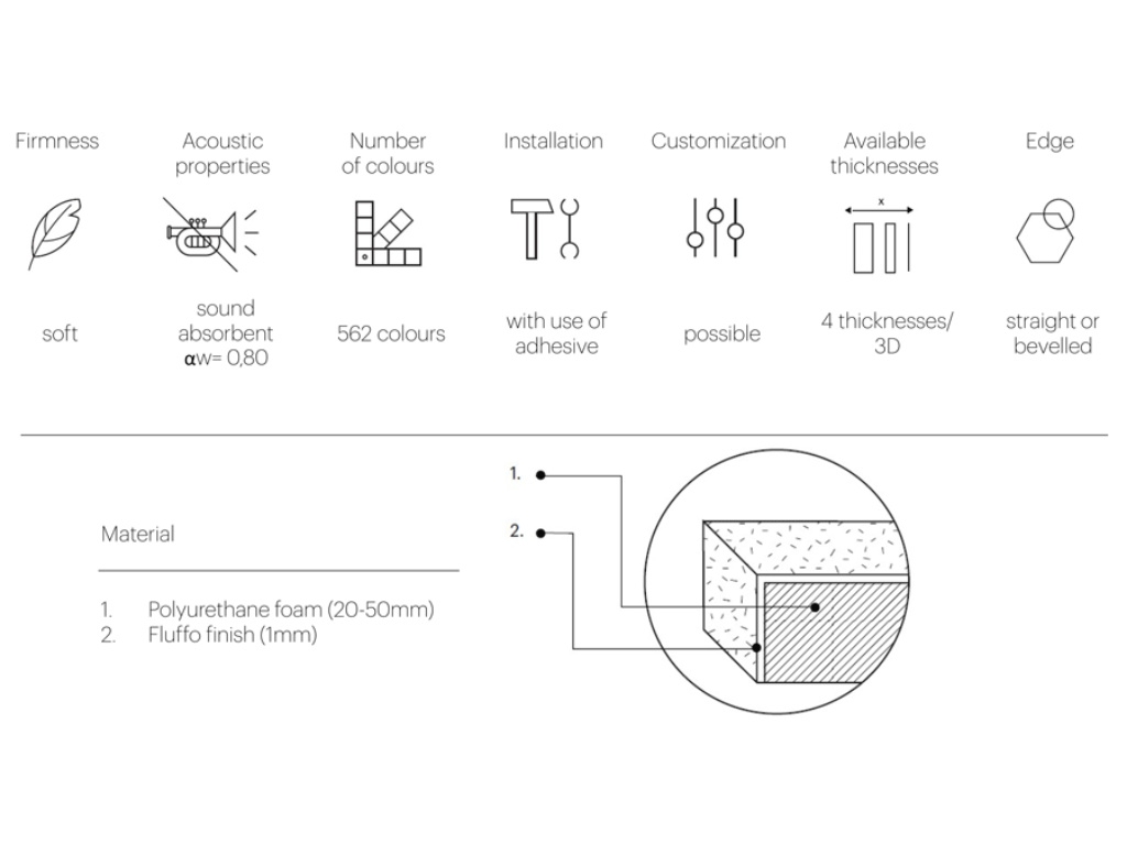 Gama de panouri fonoabsorbante Soft este compusa din urmatoarele grupe de panouri: panouri 3D, panouri plate cu margine tesita, panouri cu suprafata ondulata, panouri plate disponibile in 4 dimensiuni.