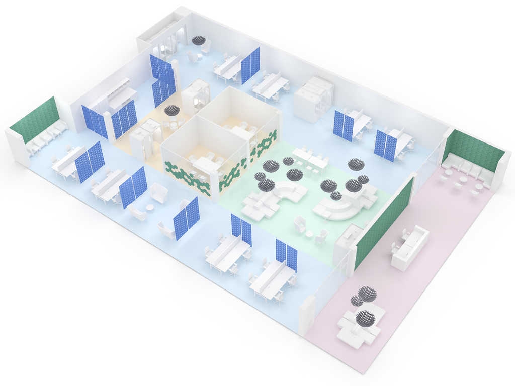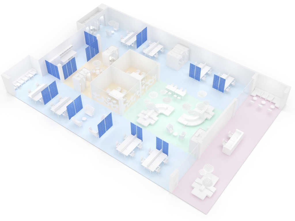 Cu ajutorul partițiilor ACOUSTIC ARTWORK, puteți împărți cu ușurință o cameră în diferite zone. De exemplu, puteți crea zone separate de lucru și relaxare sau un spațiu de lucru individual semi-privat. Aceste partiții vă vor permite, de asemenea, să amenajați un spațiu separat pentru întâlniri, relaxare sau ateliere creative într-un birou în plan deschis.