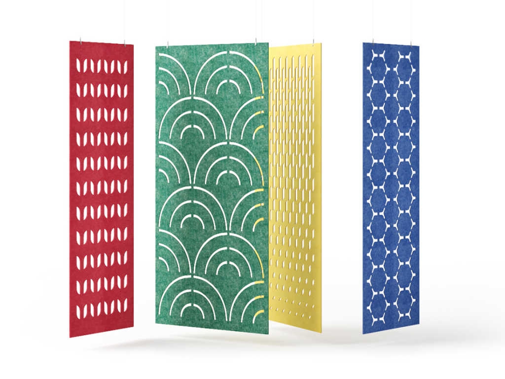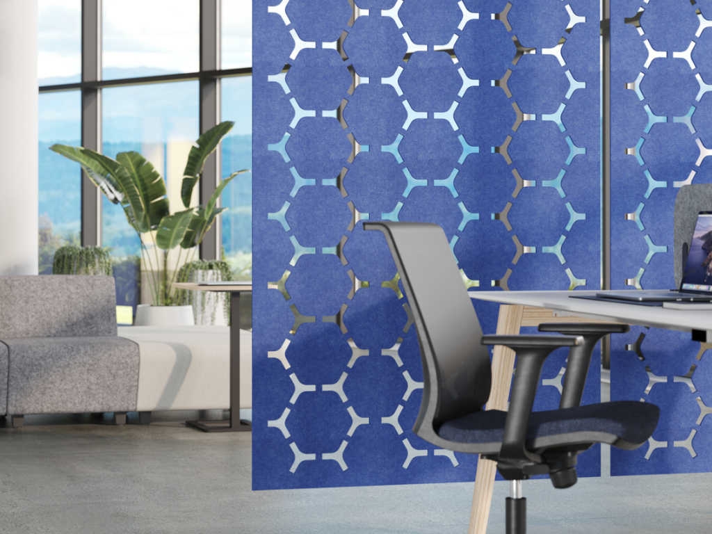 Alegeți designul și culorile preferate ale pereților despărțitori și configurați spații de birou unice, care vor fi plăcute atât vizual, cât și acustic pentru angajații dumneavoastră. Partițiile vin într-o varietate de modele cu cercuri, hexagoane, grile și o varietate de modele ondulate. Dacă nu puteți găsi o soluție vizuală pe care o căutați, putem produce partiții cu modele personalizate.