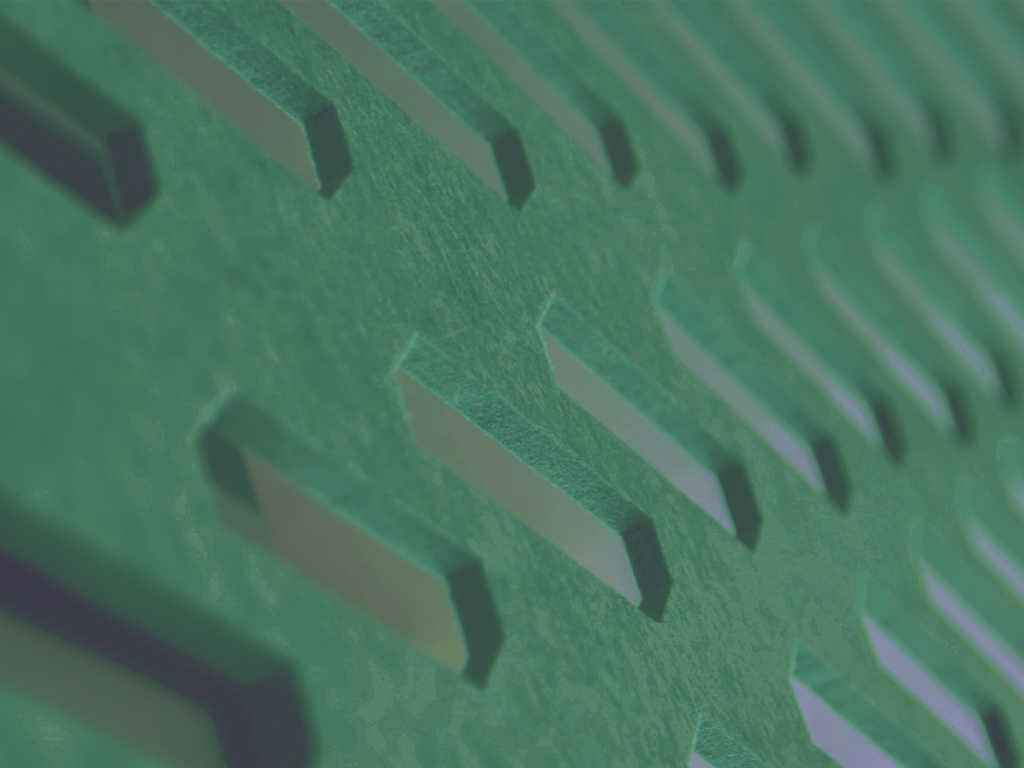 Acest material durabil are proprietăți excelente de absorbție a sunetului. Structura poroasă asigură absorbția eficientă a zgomotului de frecvență medie până la înaltă, în ciuda grosimii reduse a produsului, ceea ce este relevant atunci când lucrați la birou. Pâsla PET este moale și ușoară, dar materialul puternic și durabil este ideal pentru ecranele de birou. De asemenea, are un grad necesar de rezistență la foc și îndeplinește cerințele aplicabile de siguranță la incendiu. Datorită structurii pâsla PET poate fi ușor curățată și dezinfectată.