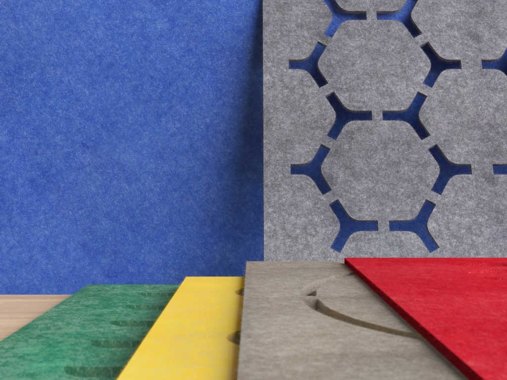 Produsele acustice din pâslă PET sunt unul dintre exemplele eforturilor noastre de a deveni o companie mai sustenabilă. Aceste produse fac parte din economia circulară: încurajează utilizarea responsabilă a resurselor și reducerea deșeurilor, deoarece sunt fabricate din materiale reciclate și sunt, de asemenea, potrivite pentru reciclare. Aceste produse se simt similare cu lâna la atingere, dar pâsla PET este fabricată din plastic și folosește mai mult de 50% din plastic reciclat.
