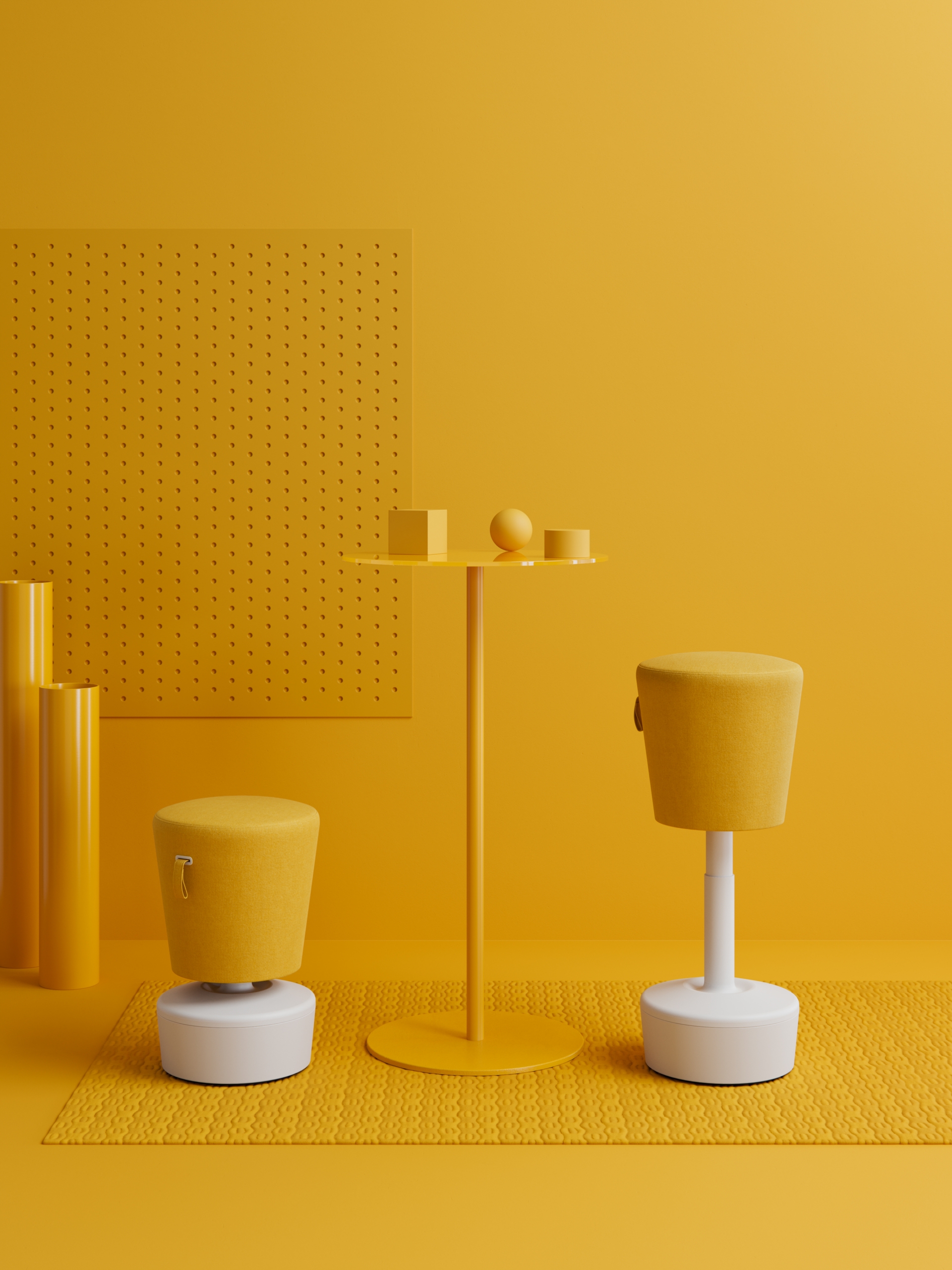 Scaunul deserveste mai multor nevoi - este rotativ, se leagana dintr-o parte in alta la un unghi de 10 grade si este reglabil pe inaltime, de la dimensiunea unui taburet pana la un scaun de bar. Aceste schimbari in timpul sederii ofera suport activ pentru coloana vertebrala.
