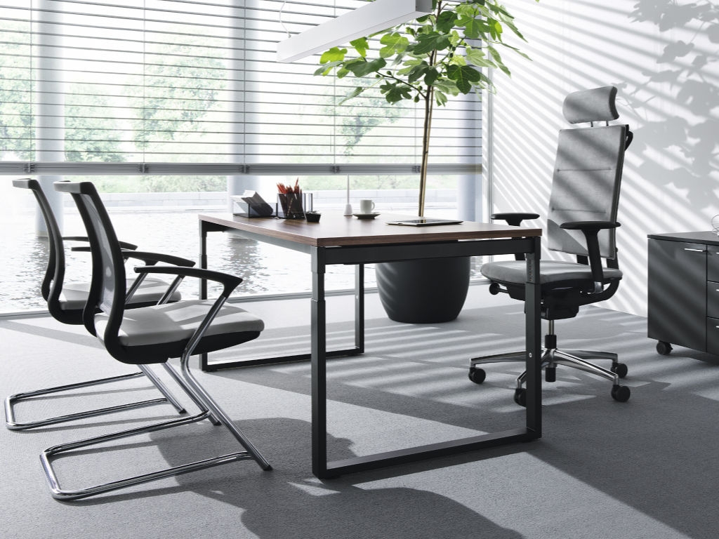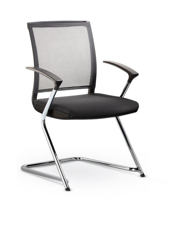 Scaunul de vizitator Sail-5-A-Mesh este un scaun cu rama metalica neagra, aluminata sau cromata si baza fixa.