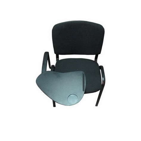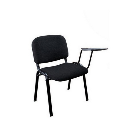 Scaunul de conferinta HRC 606 este fabricat din stofa neagra, cadru de otel vopsit negru in camp electrostatic. Bratele si masuta sunt din polipropilena.
