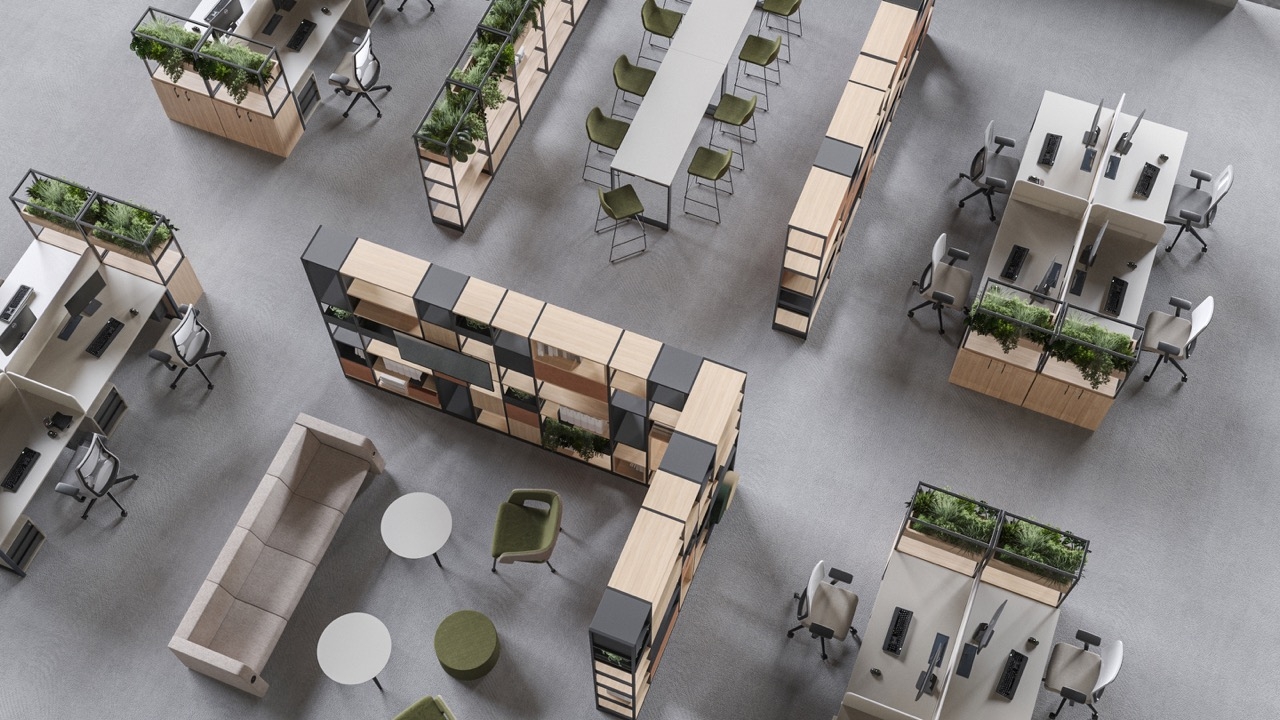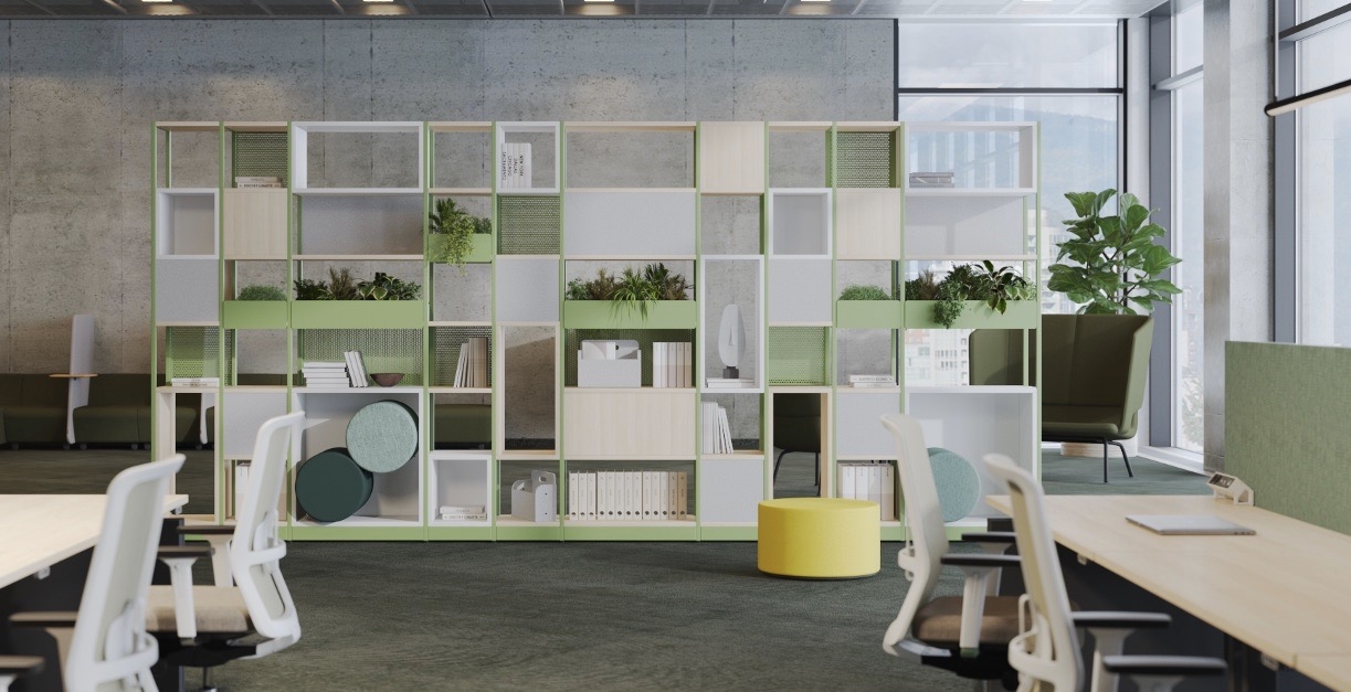 În birourile moderne, este important să ne asigurăm că există echilibrul potrivit între spațiile de lucru deschise și private prin diviziuni, precum și funcționalitatea zonelor de colaborare și lounge, atunci când modelăm diferite spații de birou. Aceasta include o gamă largă de mobilier de birou, în conformitate cu tendințele moderne, cum ar fi mese de întâlnire multifuncționale, panouri acustice, mobilier de lounge, cabine acustice, dulapuri și rafturi.
