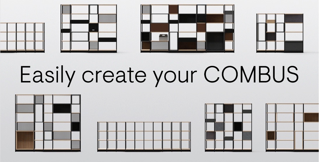 Sistemul de rafturi modulare COMBUS nu servește doar funcția unui raft tradițional, ci este și o alegere bună pentru modelarea și compartimentarea spațiilor. Acest sistem este format din unități de rafturi de sine stătătoare, rafturi pentru plate și unități de rafturi pentru dulapuri de depozitare. Colecția COMBUS are o gamă largă, cu diferite tipuri, înălțimi și forme de rafturi, pentru a oferi designerilor și arhitecților mai multe posibilități de a crea. Sistemul poate fi folosit în mijlocul unui spațiu, pe un perete sau în formă de colț.